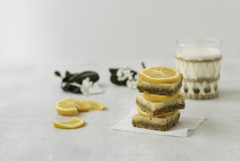 For the crust, cream together the butter and sugar. Add the flour and salt and mix until just combined. Place in a parchment lined 8×8 baking pan and press out evenly.